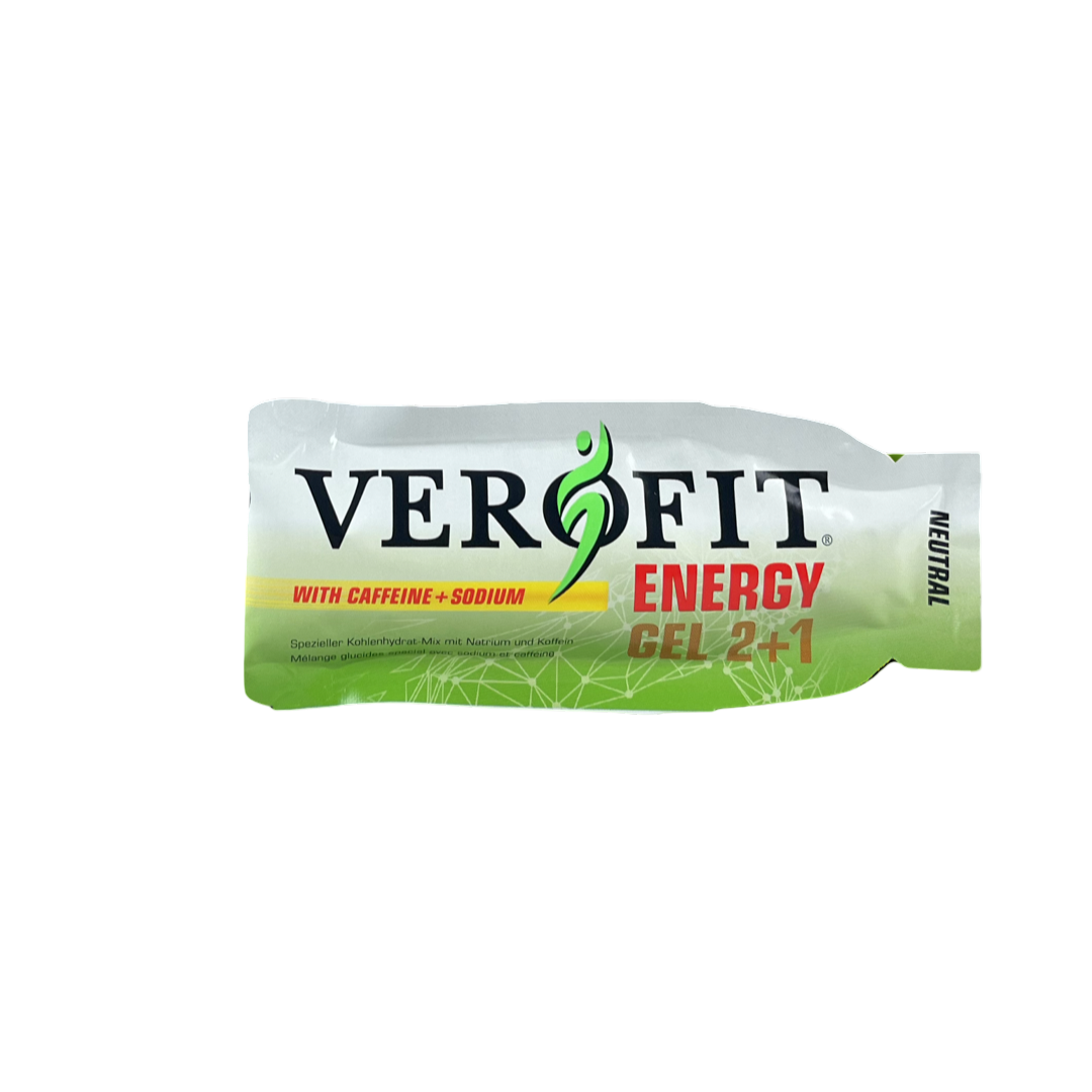 VEROFIT ENERGY GEL 2+1 ist zusammengesetzt aus Maltodextrin – was im Verdauungstrakt blitzschnell zu Traubenzucker abgebaut wird – und Fruchtzucker im Verhältnis 2 : 1. Da die beiden Zuckerarten von unterschiedlichen Transportmechanismen ins Blut befördert werden, können pro Stunde mengenmässig mehr Kohlenhydrate resorbiert werden. Folglich stehen den arbeitenden Muskeln mehr Kohlenhydrate zum „Verbrennen“ zur Verfügung. Durch die spezielle Mischung lässt sich die Oxidationsrate frappant steigen (erhöht sie um bis zu 70%!).